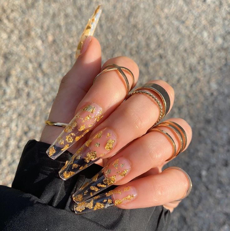 For the woman who carries elegance at her fingertips, these long nails adorned with gold flakes are a testament to luxury. They’re the golden hour of summer encapsulated in a nail design, perfect for high-tea events or an exclusive yacht party. Pair them with your finest jewelry to channel opulence and high fashion.