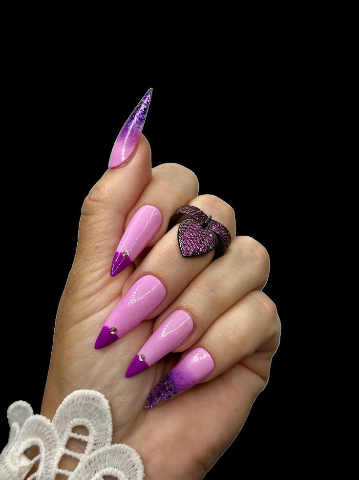 For the woman who likes her summer with a side of glam, these stiletto nails are a treasure trove. With a gradient of pink to deep purple and a dusting of glitter that mimics the night sky, these nails are your ideas pink for summer. They sparkle like a summer romance and are just as unforgettable. Pair these with your favorite evening gown and become the jewel of any high-end summer event.