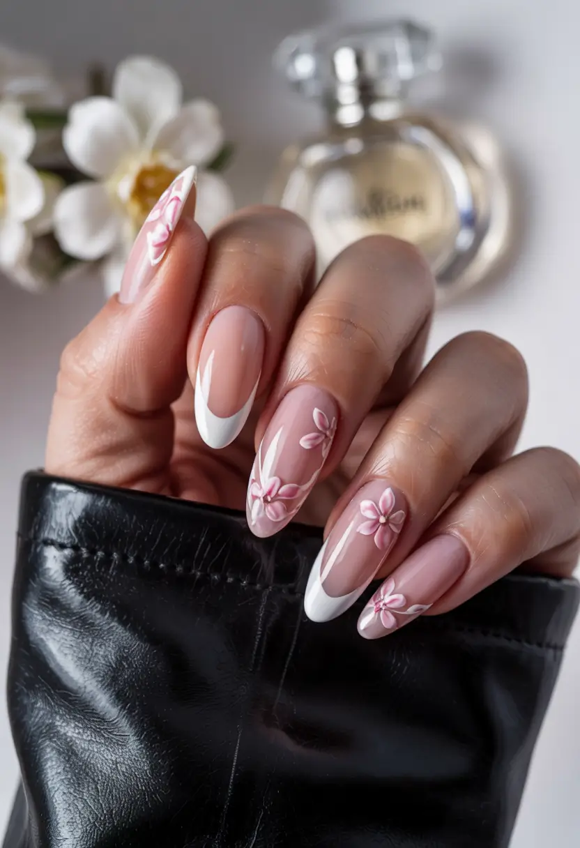#13 Floral French Tips with 3D Flowers