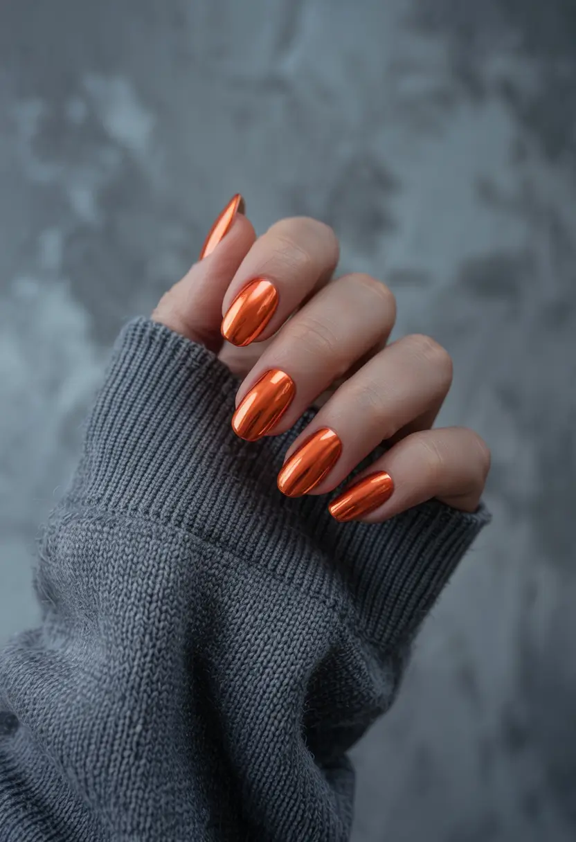 For a contemporary design, silver chrome nails are paired with an orange accessory that features subtle metallic patterns. The mirror effect polish creates a high shine that contrasts avant-garde with the solid base. This fashionable design works best on tan skin tones along with almond-shaped nails and is suitable for either gel or acrylic applications, especially for those who like daring styles. Summer 2025 brings this bold nail art design as one of the boldest color ideas.