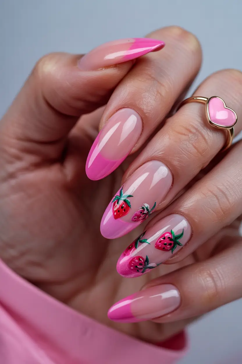 #27 Strawberry French Tips with a Twist