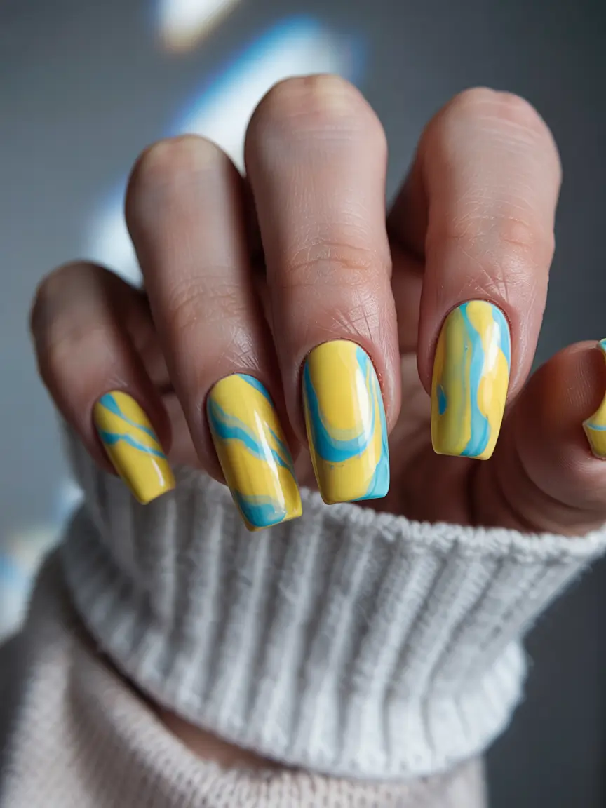 #25 Swirled Ocean Breeze in Blue and Yellow