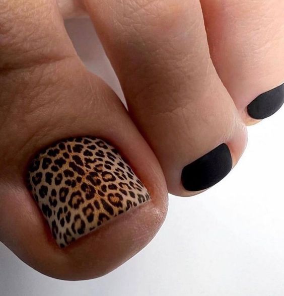Unleash your inner feline with a toe nail design that roars. This bold leopard print against a backdrop of matte black is a statement of confidence and style. It’s a trend that speaks to those who dare to stand out from the crowd. The design is versatile, suitable for colors dark skin and light skin alike, and it’s a testament to the ever-evolving 2024 gel nail technology that makes such intricate designs possible.