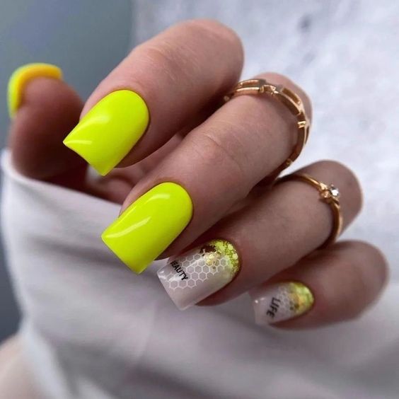 Embrace the vibrancy of neon with these eye-catching yellow nails. The bright color paired with honeycomb patterns is a combination of fun and flair, reflecting the Sagittarius’s zest for life. These short square nails are perfect for a birthday getaway or as a designs acrylic addition to a summer wardrobe.