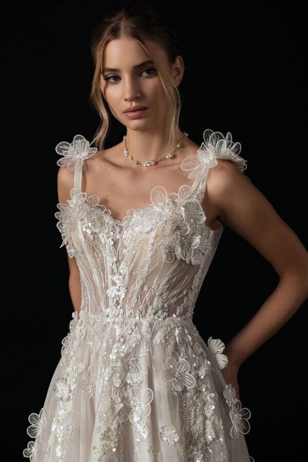 Who said simple can’t be breathtaking? With minimalistic designs and a touch of lace, this dress celebrates the beauty in simplicity.