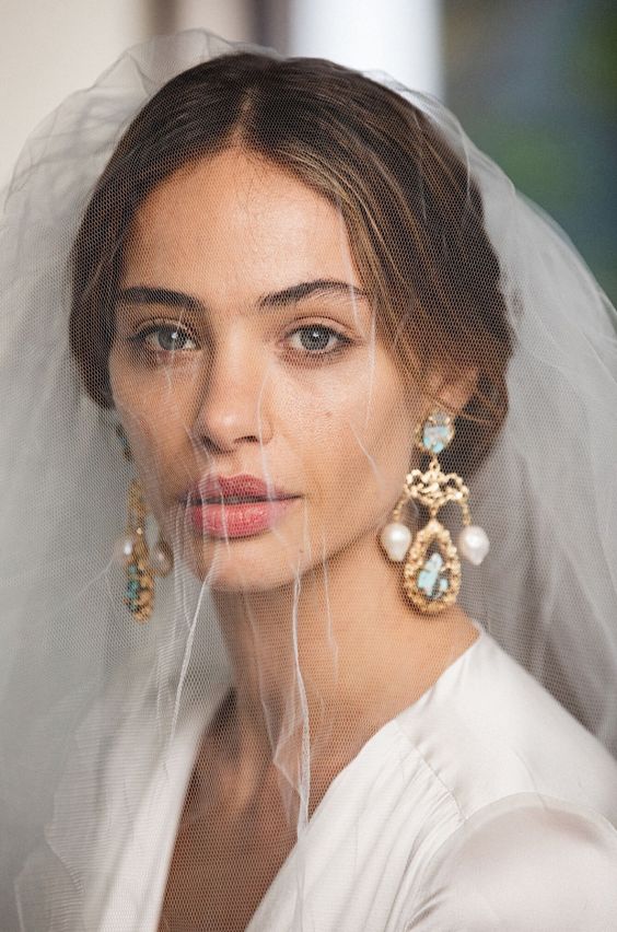 Styling Tip: Pair this look with a bold lip color for a touch of modern glamor, and consider wearing the veil over the face for the ceremony for a traditional touch.