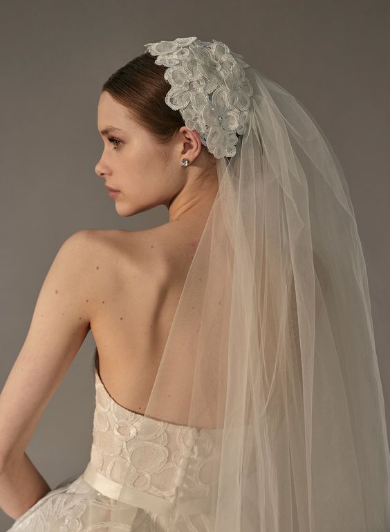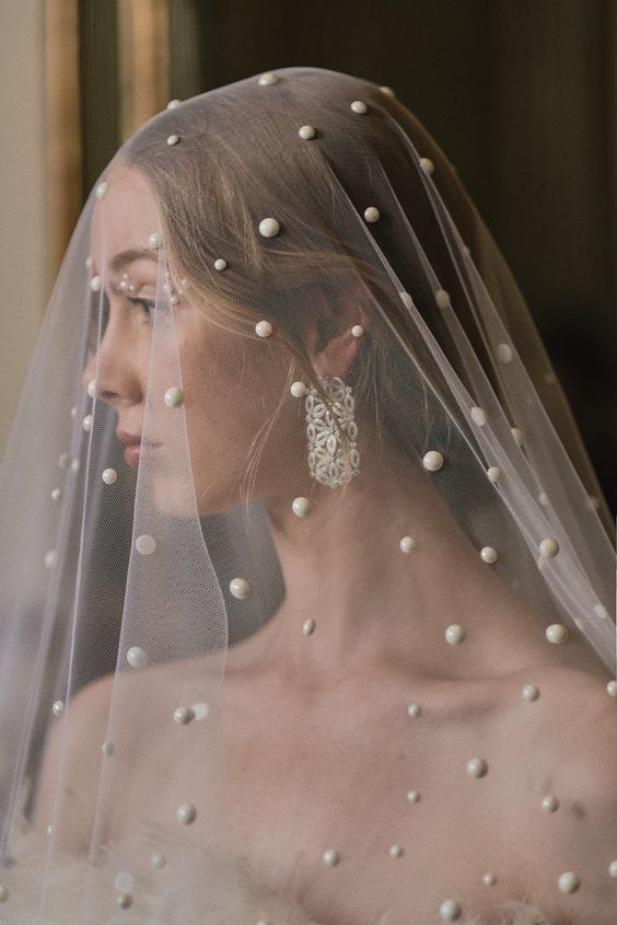 Styling Tip: Opt for pearl jewelry to echo the veil’s design and add a touch of sophistication.