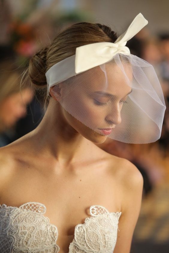Styling Tip: A midi length veil can be a unique alternative for the contemporary bride, keeping the focus on the dress’s sleek lines.