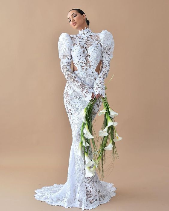 Opulent Long Sleeves and Dramatic Lace Detailing