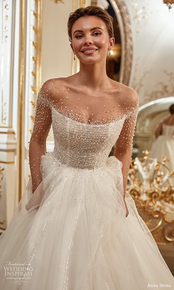 Elegance Embodied: A Sheer Illusion Neckline for Grandeur
