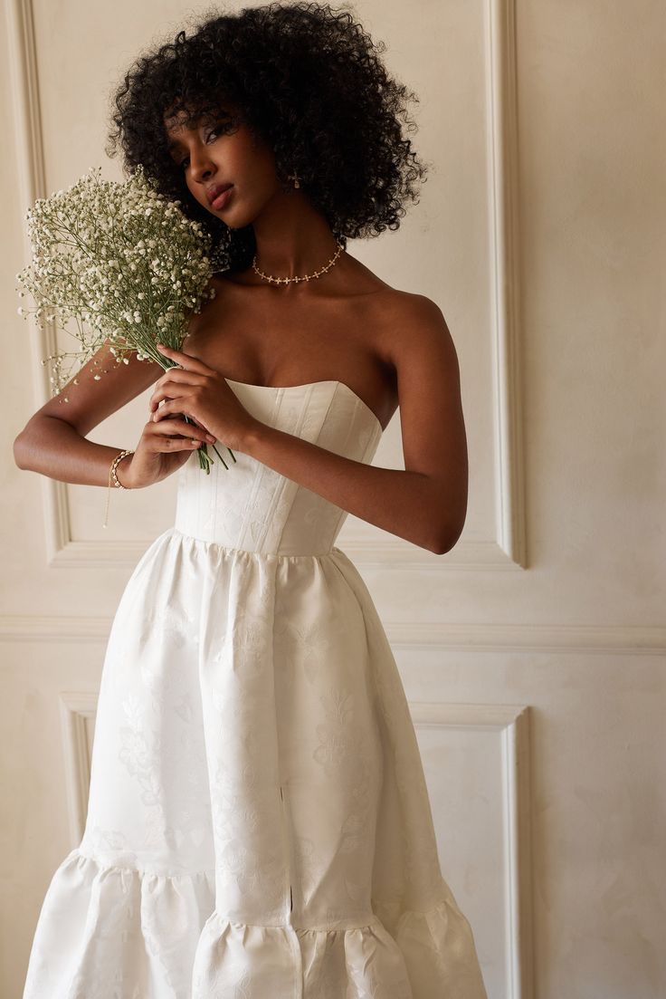 Timeless Textures: An A-Line Beauty with Embroidered Detail