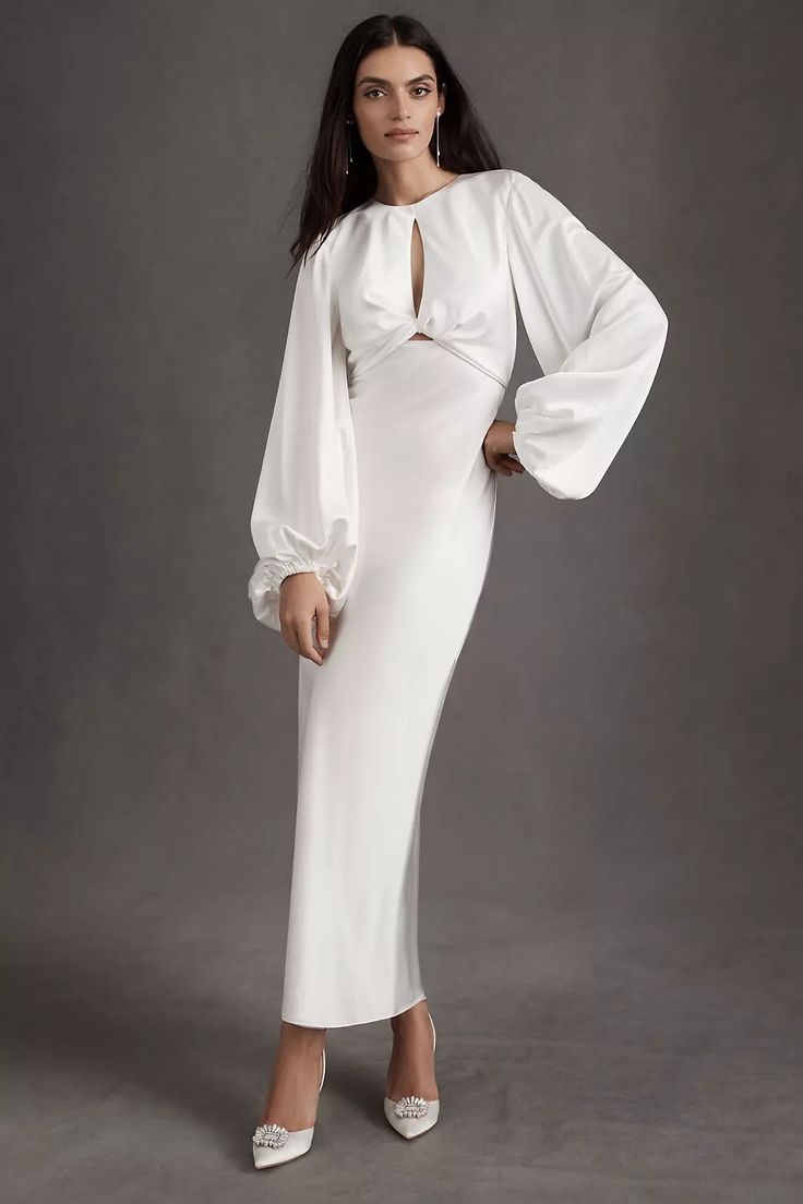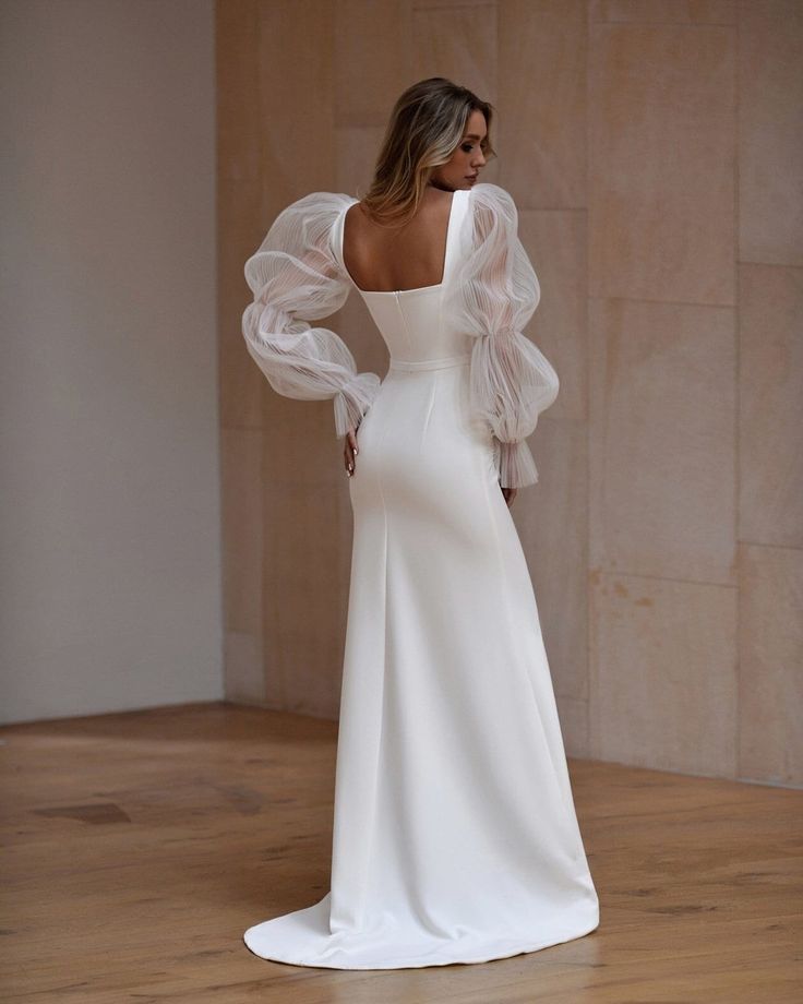For brides who love to keep things understated yet chic, a minimalist long sleeve dress can be an excellent choice. No fuss, just pure elegance.