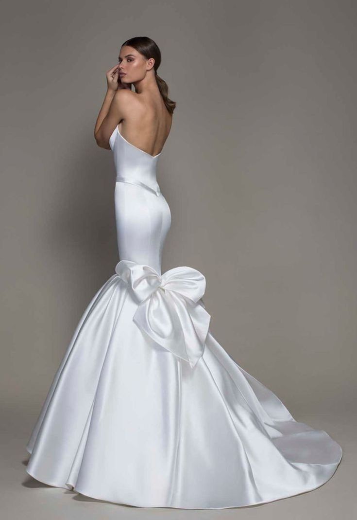 In this image, romance meets timeless chic. The soft sweetheart neckline and the classic mermaid silhouette are enhanced by a dramatic bow, adding a touch of aesthetic grace. This gown captures the delicate balance between tradition and modernity, perfect for the bride who cherishes both.