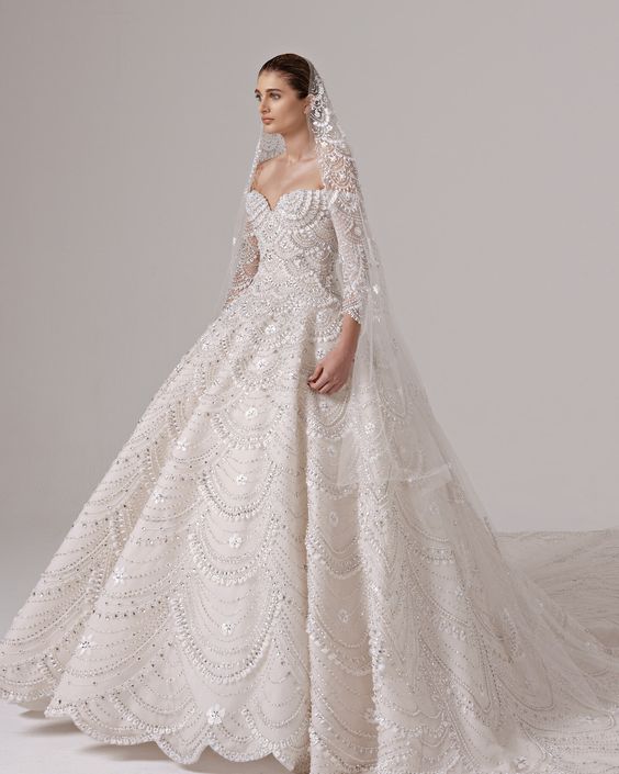 The Ethereal Elegance: Delicate Lace and Dramatic Train