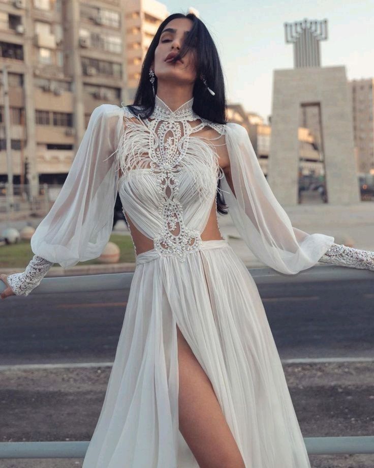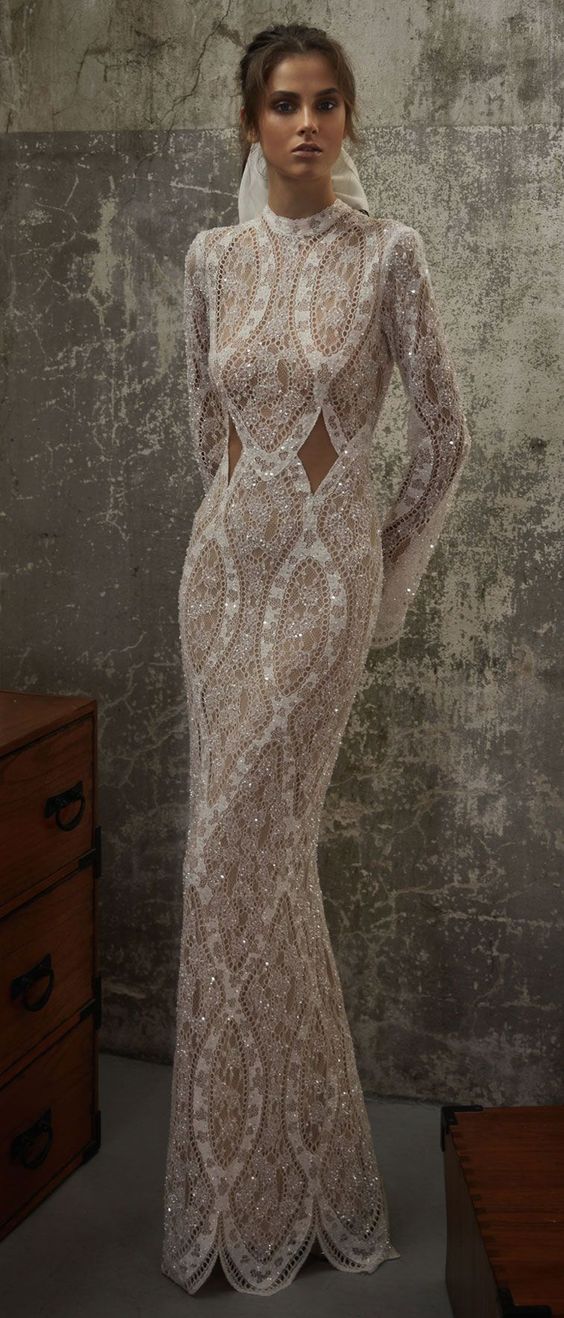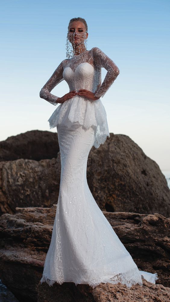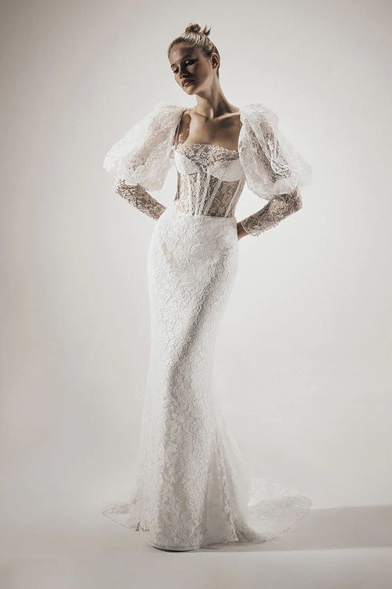 For those enchanted by the romanticism of the past, lace and long sleeves make a resounding comeback. Envision a dress that wraps you in delicate lace, its floral patterns weaving a story of timeless love. Long sleeves add a touch of modesty and mystery, while the sheath silhouette promises a modern edge.