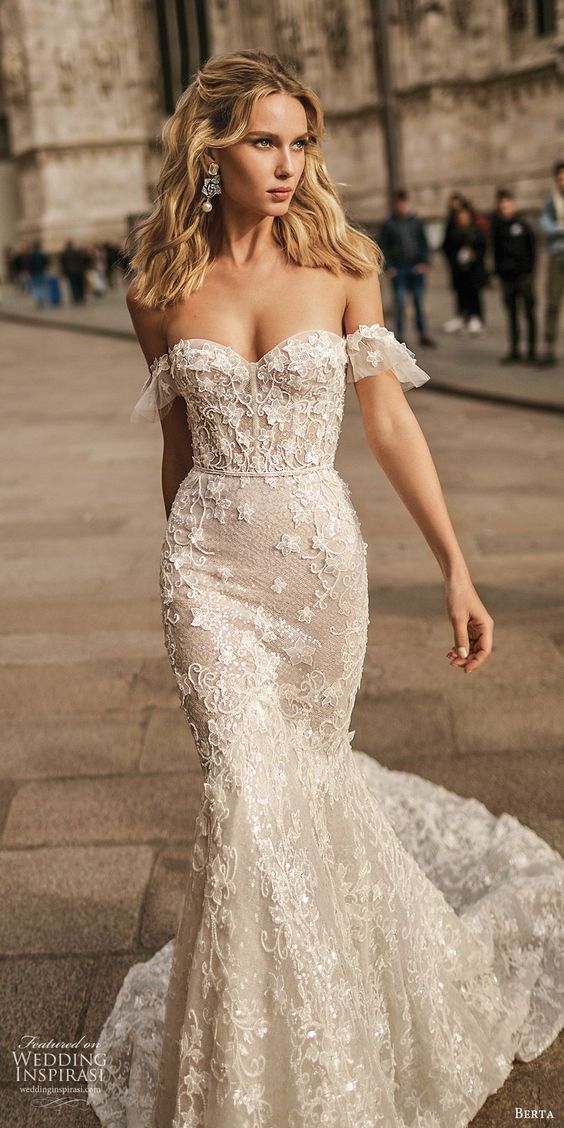 Mermaid gowns are figure-flattering and oh-so-romantic. They remain popular this year, especially when paired with lace or intricate beadwork.