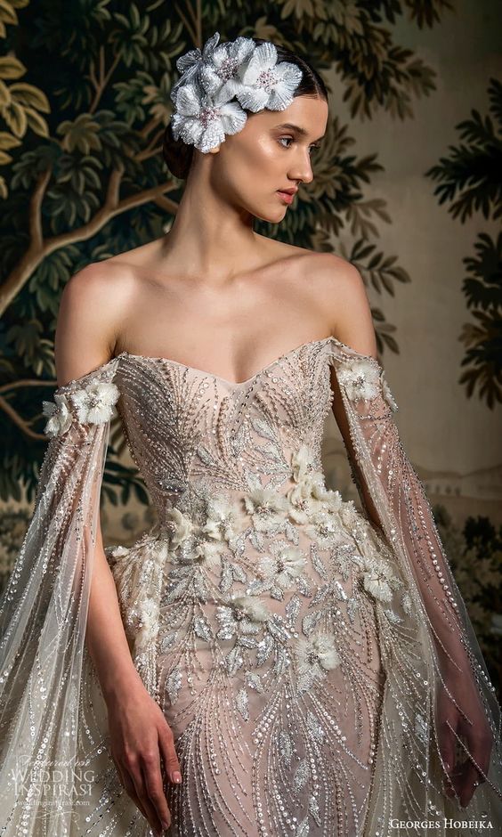 Ethereal Elegance: Sheer Sleeves and Embellished Bodice