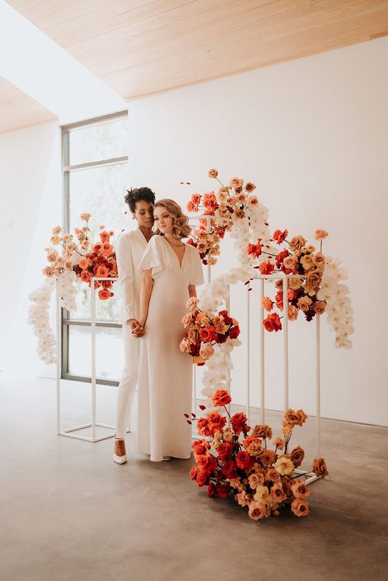 This unique and modern backdrop intertwines natural beauty with contemporary design. Perfect for an indoor setting, the vibrant array of flowers creates a simple yet elegant flower background. The design is minimal, focusing on the natural allure of the blooms, making it a great photobooth option for a new and trendy wedding.