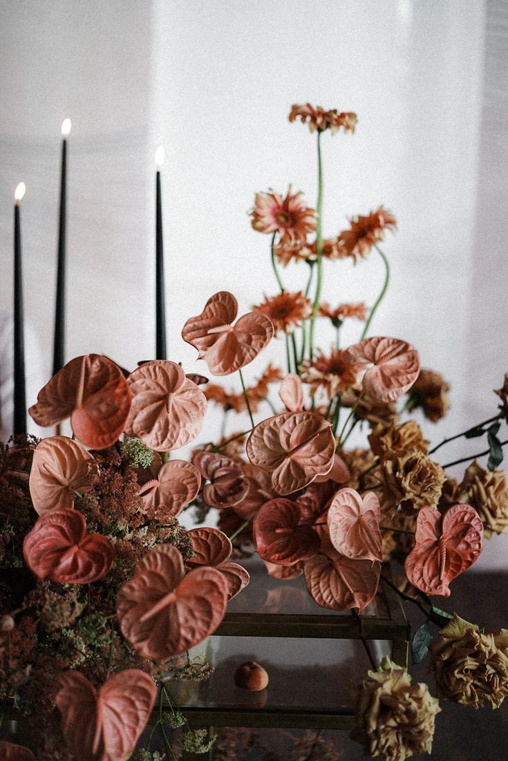 This arrangement is a warm embrace, with autumnal tones and rich textures that conjure images of cozy fall weddings. The dried elements and fresh blooms together create a centerpiece that’s both nostalgic and timely, a centerpiece tall that would stand out in any centerpiece receptions.