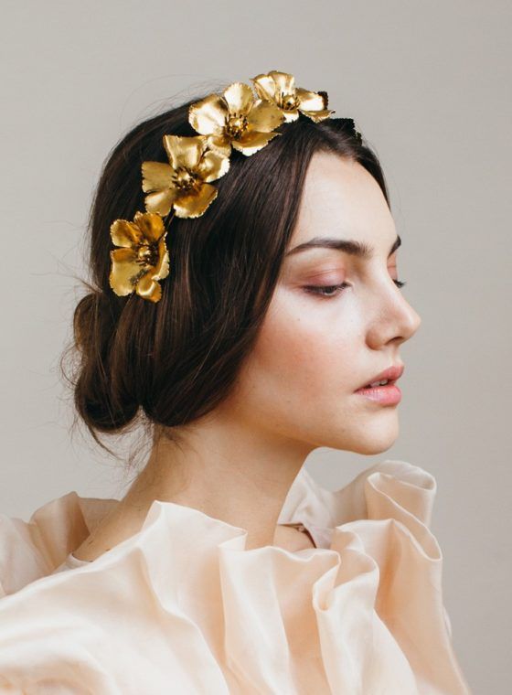 For a bride who wants to shine, this golden floral headband creates a statement without overwhelming. It’s a beautiful addition to a half up half down style or an updo, ideal for someone with medium or short hair looking for that extra sparkle on their wedding day.