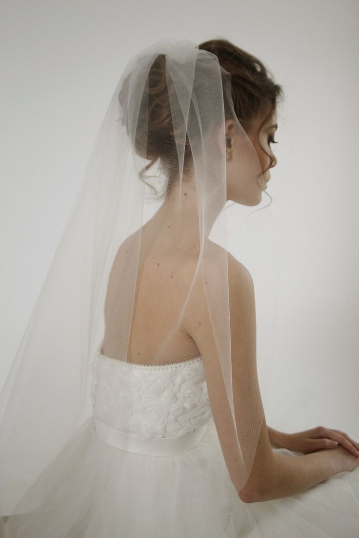 Sleek and Modern: The High Bun with a Sheer Drop Veil