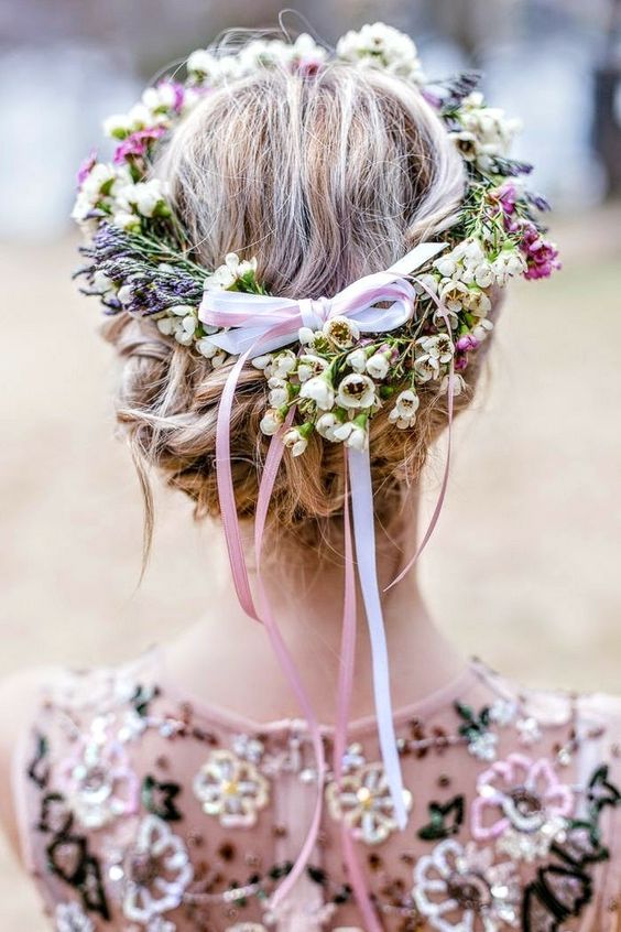 For the bohemian bride, a crown of wildflowers and ribbons encapsulates rustic beauty and simple joy. This accessory is perfect for an updo with wavy hair, a short hair curly style, or a long hair look with wispy bangs. It’s a unique testament to the DIY spirit and is especially fitting for an outdoor or beach wedding, where its natural elements can dance in the open air.