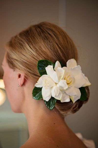 Reminiscent of ageless love, this floral clip with its lush gardenia against a rich green backdrop brings life to a vintage look or a rustic wedding theme. The accessory, perfect for a sleek low bun or a simple updo, exudes romance and is a charming choice for brides with straight hair or those opting for a medium style with highlights. Its timeless appeal honors the tradition while embracing the natural beauty of the wearer.