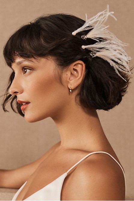 For a touch of drama and sophistication, the chignon showcased in the eleventh style is adorned with a stunning feathered accessory. Perfect for a formal or evening affair, this hairstyle is an embodiment of elegance for those with short hair. The feathers add a dynamic texture that’s both simple and stylish, ideal for a cocktail event or an upscale garden wedding. This look is a testament to how short hair can be transformed into a statement piece that’s as memorable as it is beautiful.