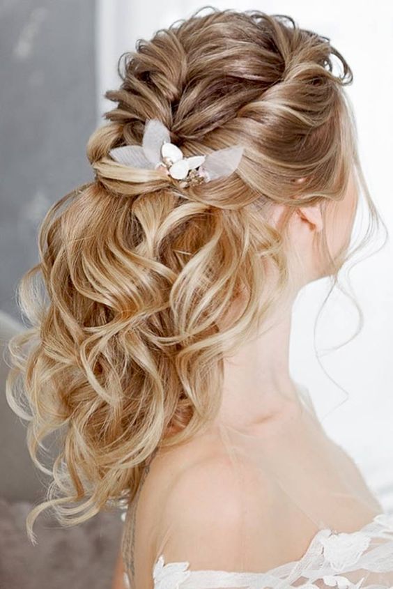 For a tale as old as time, these cascading waves decorated with delicate flowers are an ode to natural beauty. It’s an idyllic style for the bridesmaid or the bride herself, evoking imagery of fairy tales and enchanted gardens.