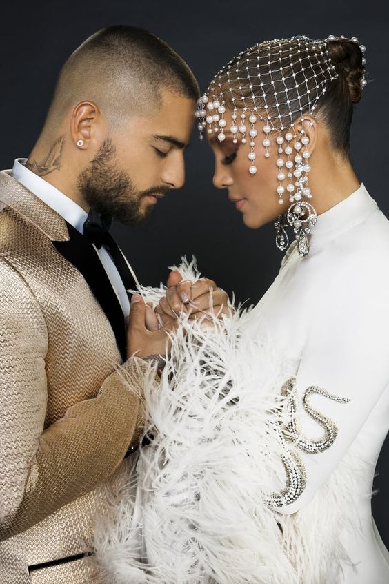 This hairstyle redefines luxury with a cascading pearl veil that flows from a polished bun. A perfect blend of classic and contemporary, it’s a regal choice for the bride who desires a hairstyle for medium length hair that’s both majestic and modern.