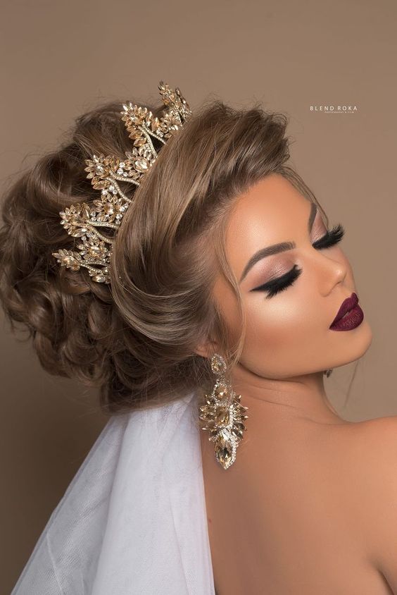 Channeling the golden age of Hollywood glamour, this hairstyle is a masterpiece of sophistication. It features soft, vintage waves crowned with a bedazzling tiara, making it the quintessential choice for the bride who wants to feel like royalty on her wedding day. This hairstyle is not just a nod to tradition; it’s a bold statement of timeless beauty.