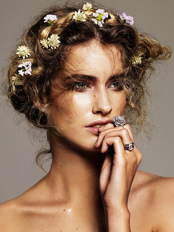Embrace the romance of the countryside with this naturally tousled look, accentuated by tiny, dainty flowers woven throughout the hair. It’s an ideal style for the bohemian bride or a wedding guest looking for a simple yet elegant hairdo that breathes life and vibrancy.