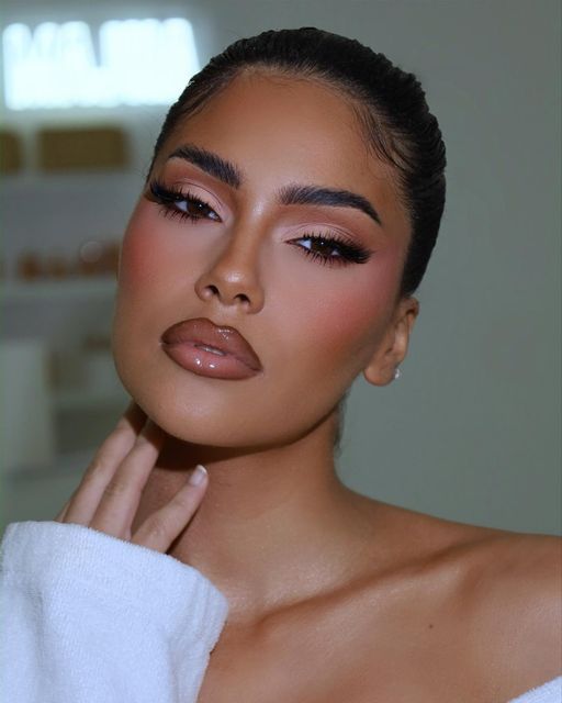 Sultry, sophisticated, and undeniably striking, this makeup style is all about intensity. The deep, dark eyeshadows and thick lashes create an unforgettable look for brown-eyed brides, perfect for a grand entrance. The lips are kept nude to balance the dramatic eyes, embodying a bold, evening-appropriate aesthetic that’s still elegant and refined.