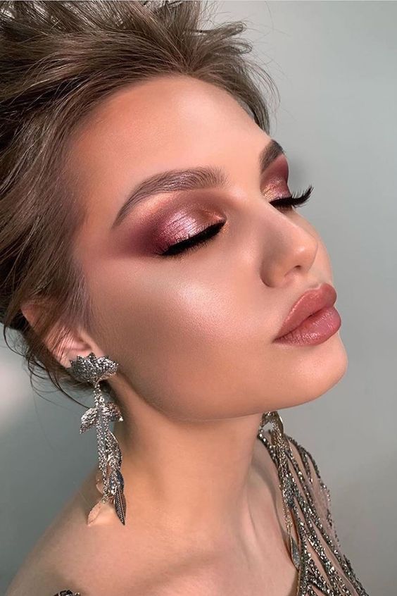 This makeup look creates a mesmerizing impact with deep, smoky eyeshadows and voluminous lashes that accentuate the natural beauty of brown eyes. The shimmer at the center of the lids adds a touch of dramatic flair, perfect for an evening wedding reception. Paired with a matte nude lipstick, this look is about bold contrasts and classic elegance, making it one of the best choices for brown-eyed brides who want to make a statement.
