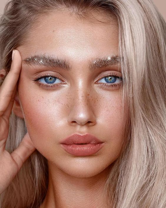 Imagine a winter wonderland wedding where the bride’s blue eyes mirror the icy splendor of the season. This makeup design employs a palette of cool tones, with silvery eyeshadow casting a mesmerizing glow. The frosted eyebrows add a modern twist, suggesting a bride who embraces 2024 trends with confidence. This look is ideal for those seeking inspiration for blue eyes that demand to be noticed, with a natural blue eyes finish that radiates amidst a snow-kissed setting.