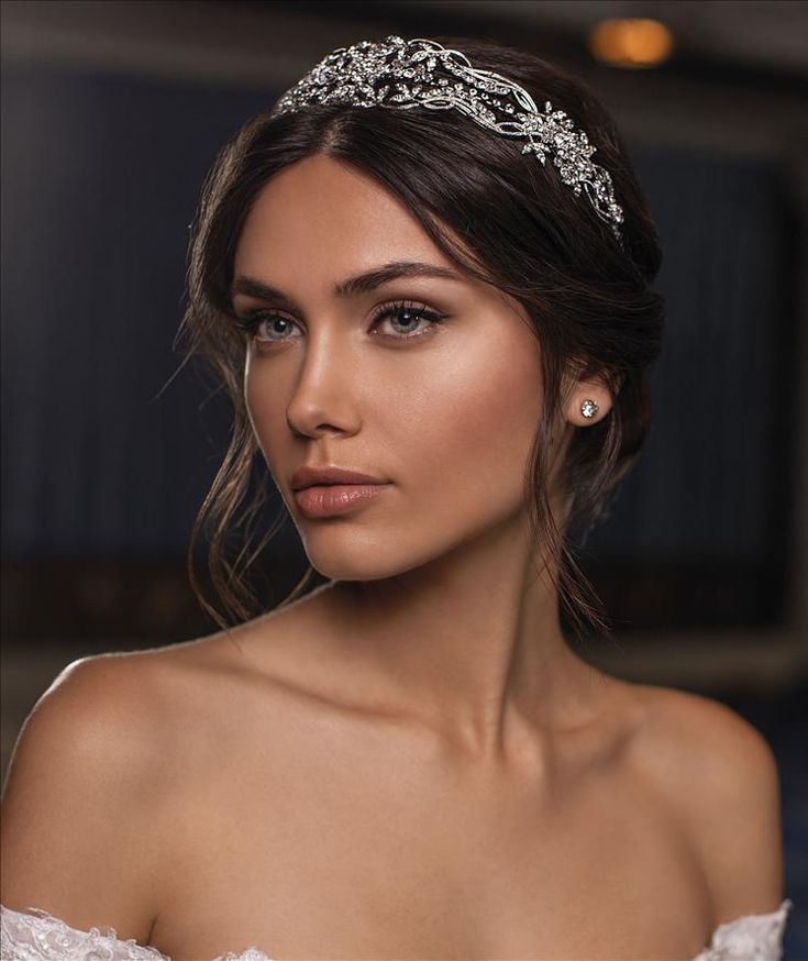 This bride’s makeup speaks of timeless elegance, with soft, shimmering highlights that catch the light with every movement. The use of a gentle contouring technique defines her features with a royal finesse. This look, complete with a delicate tiara, is perfect for the bride who envisions her day filled with classic charm and inspiration drawn from the past, yet still aligns with the 2024 trends.