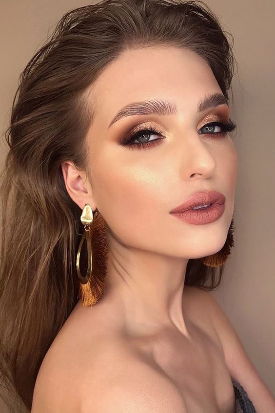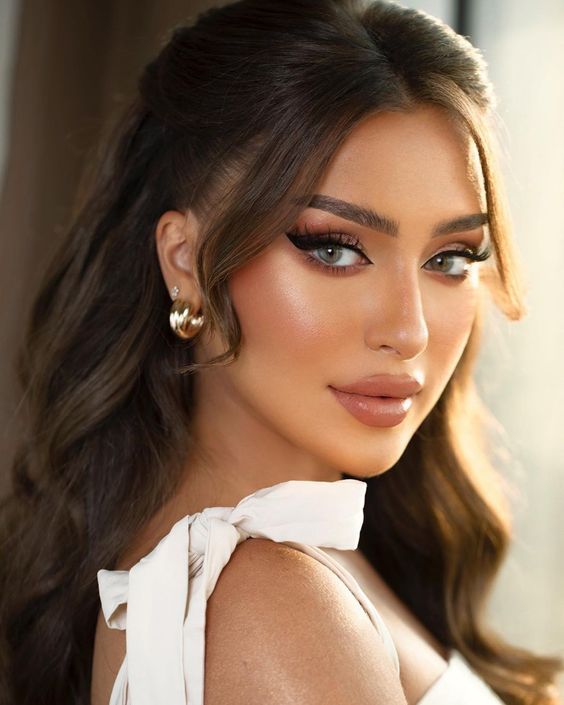 A modern muse’s wedding day calls for a makeup look that’s as contemporary as it is captivating. This style showcases a bronzed, smoky eye that pairs flawlessly with natural brown eyes brunettes or those with for green eyes. It’s a warm and inviting look that complements a variety of dress colors, from for green dress to neutral tones, encapsulating the essence of 2024 trends in bridal beauty.