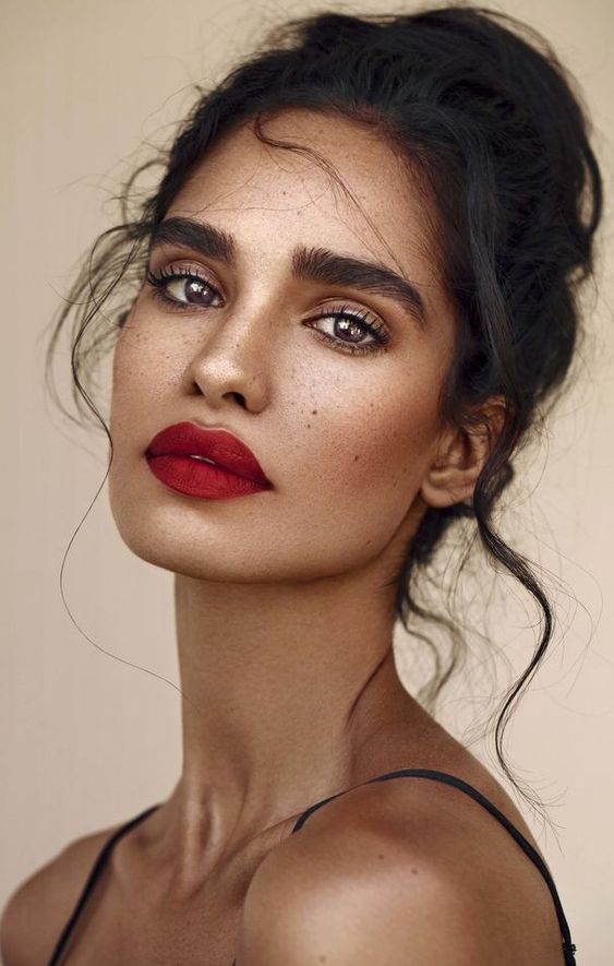 Echoing the timeless allure of old Hollywood, this makeup style is unabashedly bold with its striking red lipstick and perfectly defined brows. Ideal for the bride who loves to make an entrance, this look is all about confidence and classic glamour. It pairs exceptionally well with a for pink dress or a classic white gown, making it a versatile choice that transcends 2024 trends.