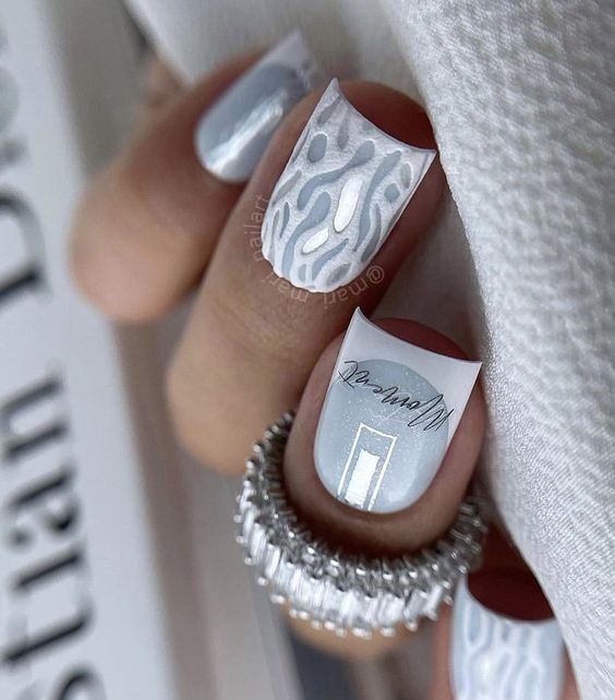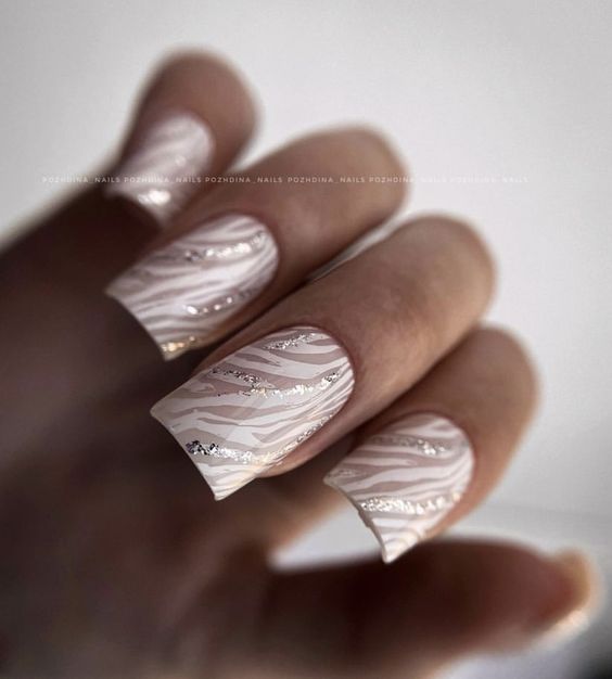 For the bride who walks on the wild side, these nails feature a zebra print in silver and white. This bold choice is for the bride who’s not afraid to stand out and show her unique spirit, making a statement of individuality and fearless style.