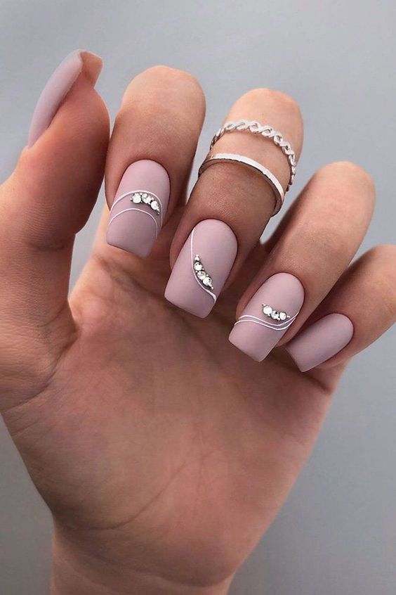 Soft lavender nails bedecked with crystal embellishments embody the Classy bridal almond silhouette. This design merges for bride classy bridal with a whisper of luxury, perfect for the bride who cherishes simple elegance adorned with a hint of sparkly opulence. It’s a design that speaks volumes in the language of love and sophistication.