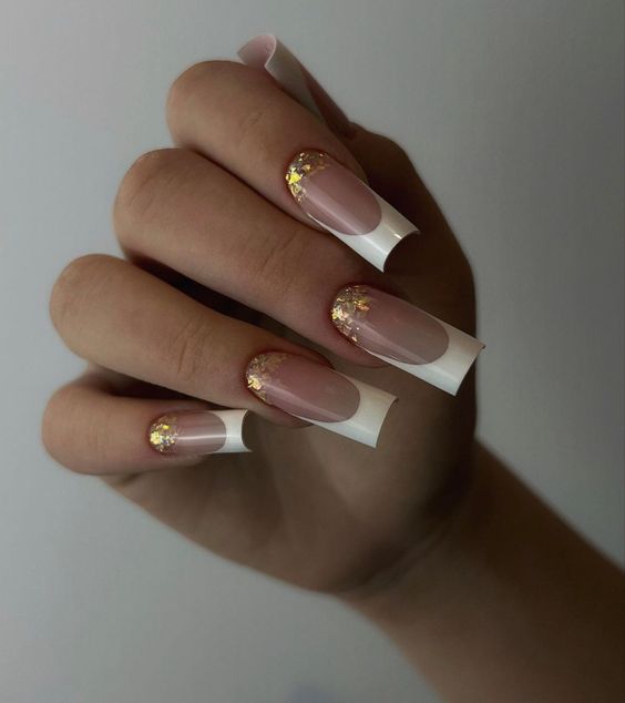 Gold leaf against a translucent pink offers a modern twist on the Classy bridal french manicure. This design bridesmaid also makes for a fabulous for bride choice, with its best use of gold accents adding a luxurious feel to the classic bridal look.