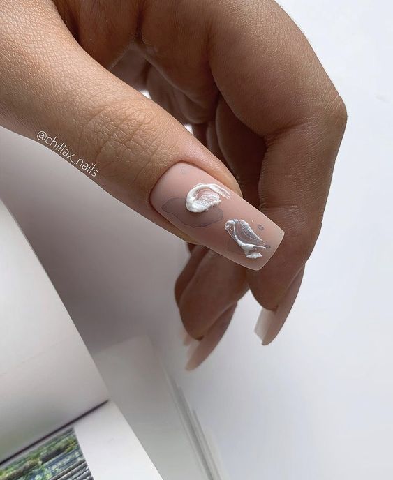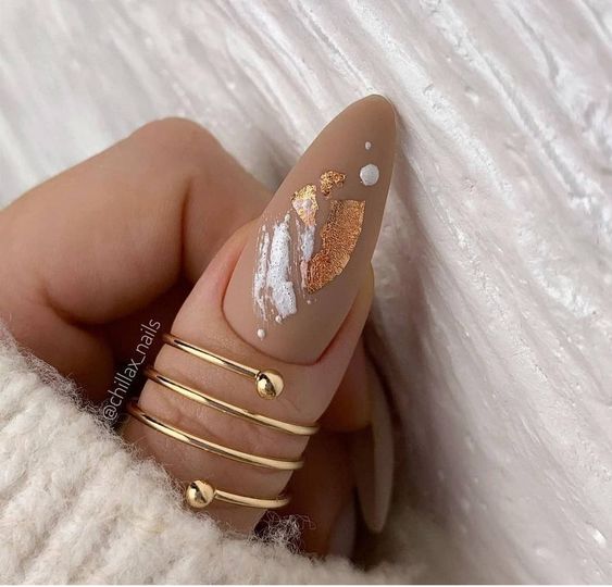 For the bride who is inspired by the earth’s natural beauty, this oval nail design captures the essence of bohemian spirit. The muted brown base adorned with gold leaf and white accents speaks to the bride who finds beauty in the organic and the artisanal. It’s a design that complements a vintage lace gown or a wedding classy outdoor ceremony.