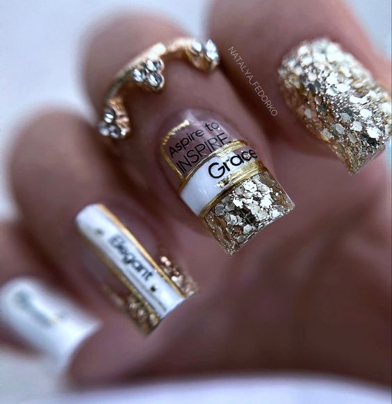 In the world of weddings, every detail is a reflection of the couple’s unique style and the special bond they share. Among these details, the bride’s nails hold a subtle, yet significant place. They are not just a statement of beauty but an accessory that complements the grandeur of the wedding ring. In this article, we delve into the luxurious world of gold wedding nails, a trend that brings a touch of opulence to your bridal ensemble. We explore a variety of styles, from the glimmering wedding nails sparkle gold to the understated elegance of white and rose accents.