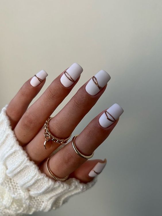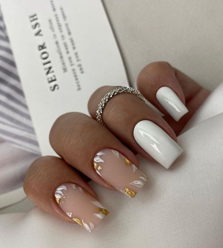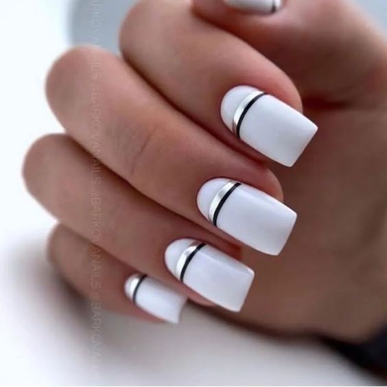 This nail design speaks to the minimalist bride who adores a sleek look. The stark white color is timeless, while the single black stripe adds a modern edge. The square shape is both contemporary and practical, making it a perfect choice for brides who lean towards a modern, yet simple aesthetic.