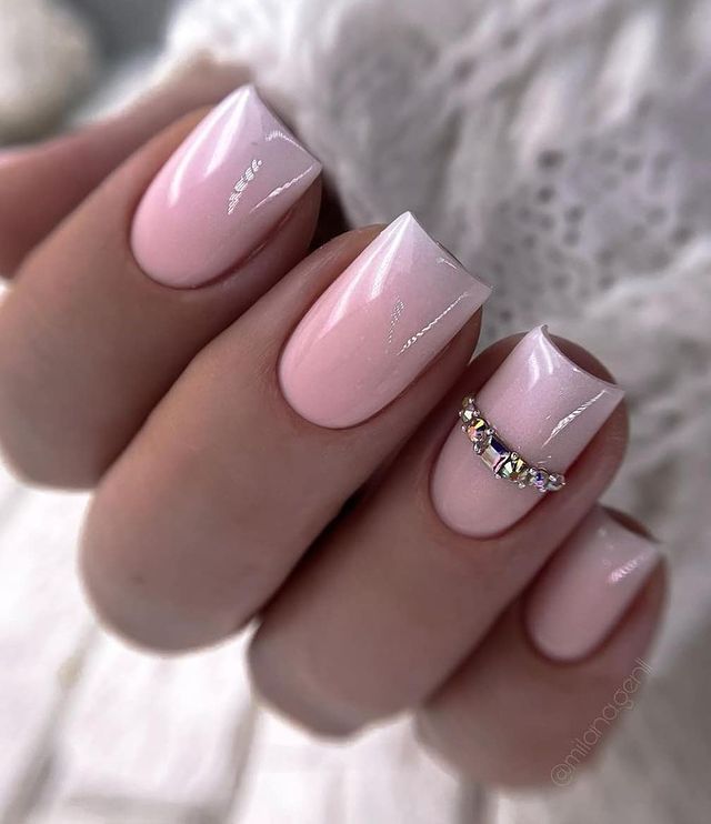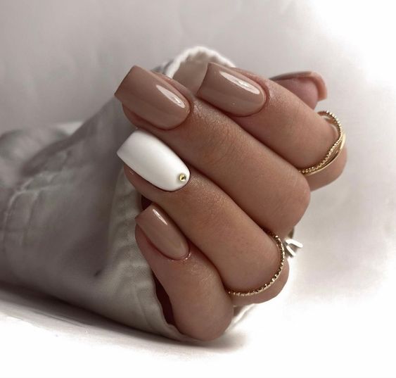 For the bride who appreciates the beauty in simplicity, this nail design offers a minimalist approach with a clean, elegant white base, accented by a singular diamond stud. The short length is practical, while the square shape provides a modern edge. It’s a versatile style that could suit any wedding theme, from bride trends to more simple yet sophisticated aesthetics.