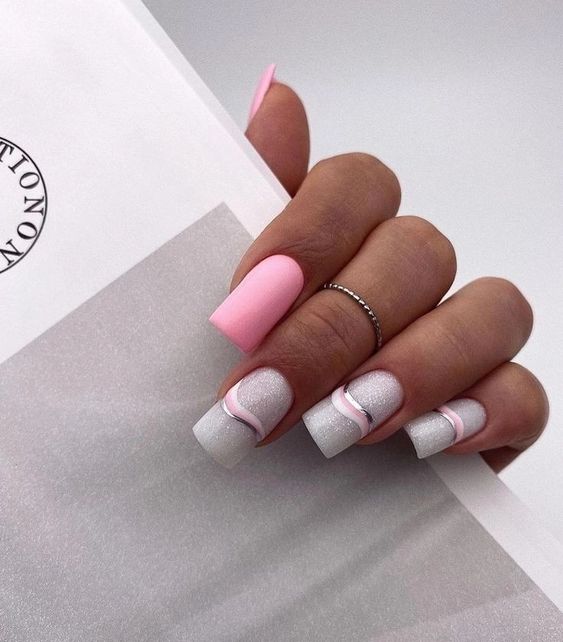 A classic French manicure with a pink twist offers timeless elegance. This design is perfect for the bride white or bride pink who loves a traditional look with a touch of color. The medium length and square shape are perfect for all wedding activities, from the ceremony to the dance floor.
