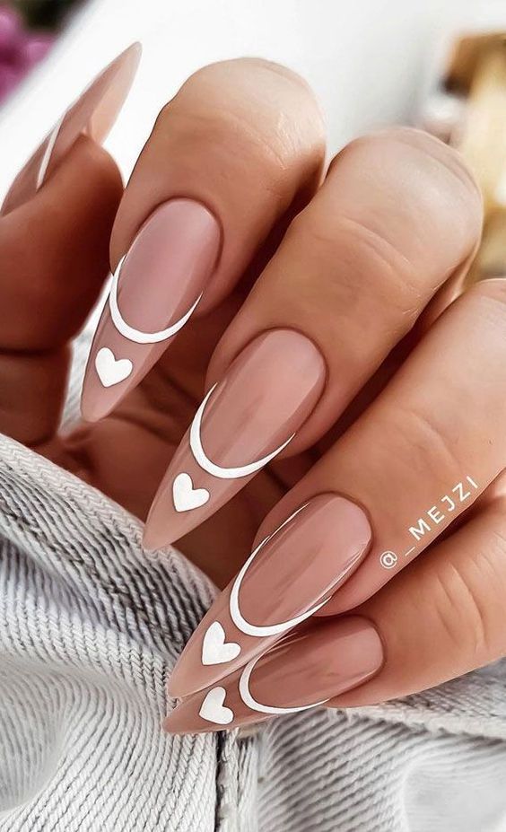 These medium-length, oval-shaped nails in a pink nude tone offer a subtle nod to sophistication with their lace-like white tips. Ideal for a bride or bridesmaid seeking a simple yet refined look, these nails would pair wonderfully with any wedding attire, from boho to classic.