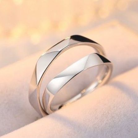 A square silver ring is both modern and sophisticated. It’s perfect for couples looking for a unique geometric touch.