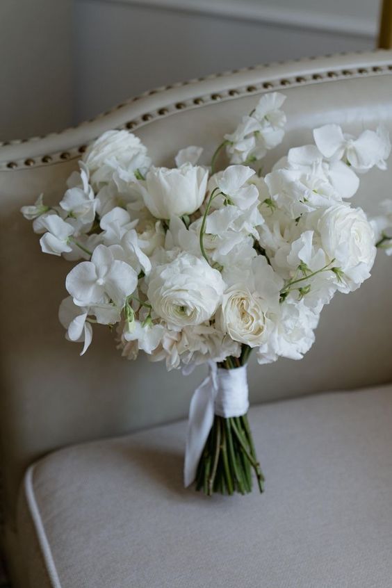 The bouquet in this image is a classic and timeless choice, with white roses and delicate blooms that speak of everlasting love. This all-white palette is a testament to the enduring nature of true love, offering a palette that will remain as timeless as the institution of marriage itself.