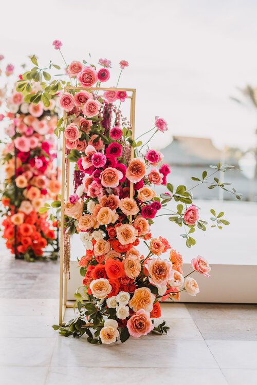 Behold a picture-perfect vision of palette green and rosy hues that frame the walkway like a passage from a romantic novel. This is where modern meets boho, a unique floral arrangement that not only accentuates the aisle but also promises to be a backdrop for memories that last a lifetime.